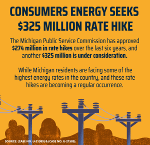 Those who spoke at this press conference made it clear that Consumers Energy is asking for an additional $325 million in electricity rate hikes.