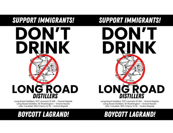 Additionally, the Crain’s Grand Rapids Business article never mentions that there has been an organized boycott of Long Road Distillers locations and products since last October, when members of Movimiento Cosecha and GR Rapid Response to ICE began the campaign with a protest in front of their Leonard St. location.