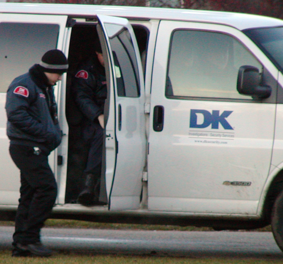 In Nov. of 2004, Light Metals locked out their UAW workers until a court decision brought union workers back to work. This year’s lockout is patrolled by approximately 20 DK security guards in white vans, who make sure that the workers on the picket line don’t stray past the “No Trespassing” signs stuck in the well groomed lawn out front.