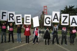 - San Francisco, California 12-31-09 Five hundred supporters of breaking the siege on Gaza marched across the Golden Gate bridge .