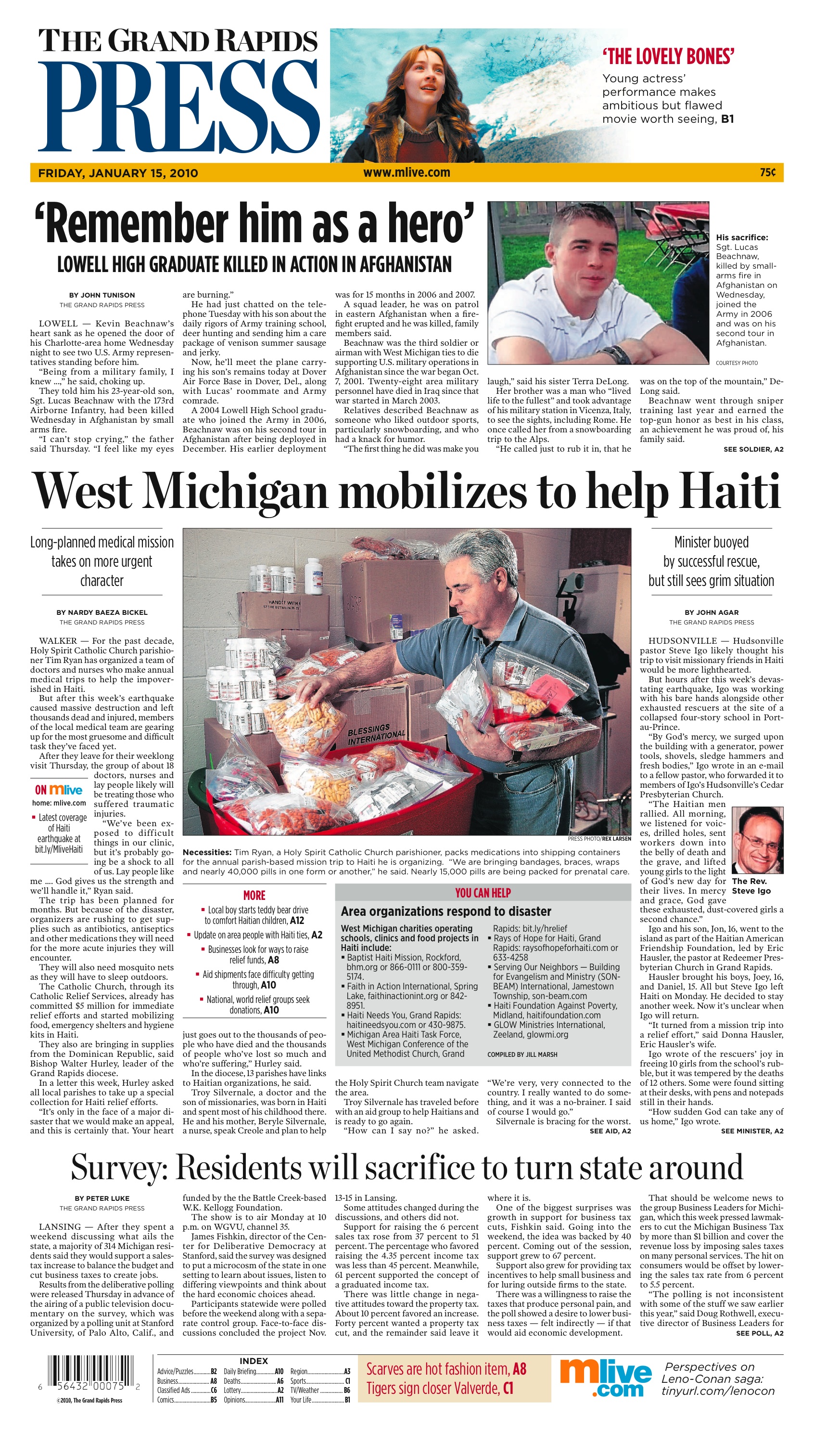 Yesterday, the Grand Rapids Press applied its own form of collateral language in a front-page story about a former Lowell high school student who was killed in Afghanistan.