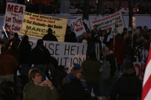 The Press ran an AP story that did acknowledge some of the groups protesting outside the capital, such as the Michigan Taxpayers Alliance and the Detroit-based group Moratorium Now Coalition. The article also acknowledges that there was a student group at the capitol protesting education cuts, but it is not clear how this group was organized. The student group was with the MSU Undergraduate Alliance.