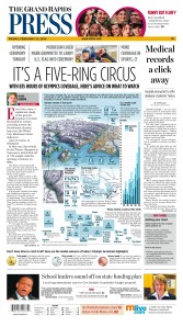 As would be expected, the local news coverage of the 2010 Olympics is nothing short of adulation. The Grand Rapids Press front page for February 12 is devoted to the opening of the Winter Olympics with the headline, It’s A Five-Ring Circus. MLive.com has a 2010 Olympics features section and WOOD TV 8 has major online coverage to add to their broadcast coverage, which is not surprising since NBC is the US network host of the 2010 Olympics.
