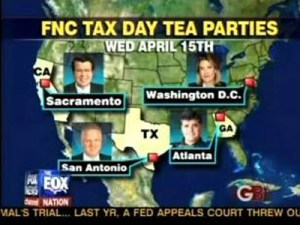 The Tea Party also gets substantial support in the form of promotion from the Fox News Channel and its talk show hosts, including Glenn Beck. Media Matters noted that “While discussing the April 15 protests on his April 6 program, Beck suggested that viewers could “[c]elebrate with Fox News” by either attending a protest or watching it on Fox News. Beck stated that in addition to himself, hosts Neil Cavuto, Greta Van Susteren, and Sean Hannity would be “live” at different protests. While Beck spoke, on-screen text labeled those protests as “FNC Tax Day Tea Parties.”