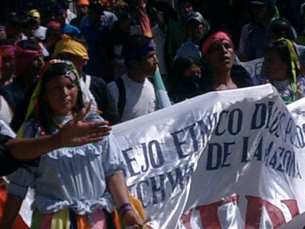 On June 5th, 2009, approximately 5,800 Peruvians, mostly natives, were gathered just outside of Bagua, a town only 6 hours car ride from Lamas. They were gathered there for a strike that had begun April 9th, 2009. The strike included a roadblock and the taking of two nearby pumping stations and intended to protest the Free Trade Agreements (FTA) signed between the U.S under the Bush Administration and the government of Alan Garcia in Peru on December 4th 2007. These agreements, and the promulgation of hundreds of legislative decrees by Garcia, have opened indigenous territories to multinational companies without the consent of the indigenous people, and at the expense of their physical, mental, and spiritual well-being. The protests provoked a violent repression on behalf of Garcia’s government, now referred to as the “Bagua massacres” on June 5th this past year. The police attacked at 5:30 am releasing tear gas and firing machine guns at the natives who were armed with lances, stones, and bows and arrows to defend themselves. In the official death toll it was released that 24 police officers and 10 civilians were killed. However, according to various native and social movement communities, there are an estimated 200 to 500 persons involved in the strike who were “disappeared” by being thrown into rivers from the police helicopters and their corpses being burnt.
