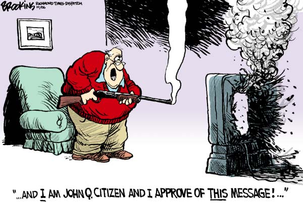 The political ad then transitions to a few positive notes about Cox, such as his fight against the national health care legislation, Governor Granholm and Blue Cross & Blue Shield. The spot ends by saying that Mike Cox is “tough enough to lead Michigan.”