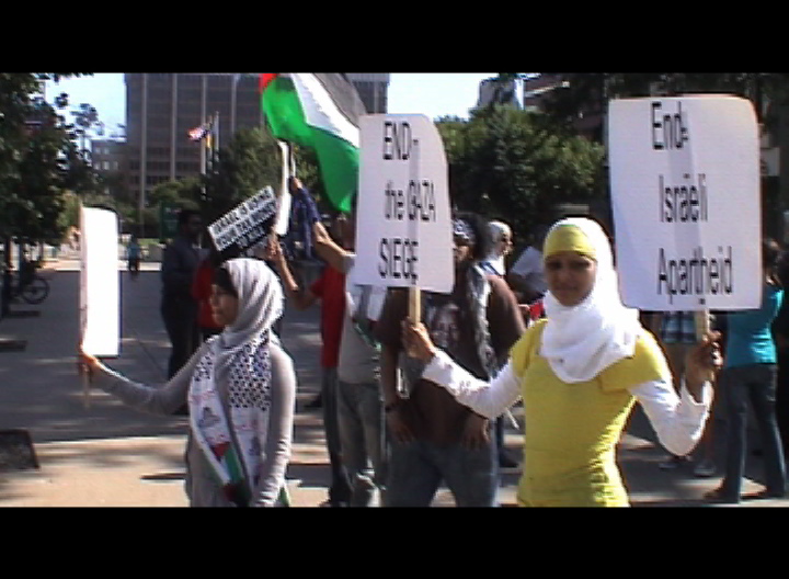 Local Arab-Americans and supporters demonstrate against Israeli violence