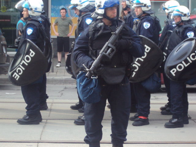 And the context for this is really frightening, because the police are feeling really cornered and feeling like they have to justify something which is completely unjustifiable. And that is the price tag that they put on what it would cost to provide security for the G8 and G20 summit. Security for this summit cost, as you mentioned, an estimated $1 billion. Just to put that in perspective, it’s more than security has ever cost for any summit ever in the world. And, you know, Canada is not a country which has a history of terrorist attacks. So, it isn’t at all clear why they felt they needed to spend such a huge amount of money. As a point of comparison, at Pittsburgh G20 summit, the price tag for security was $100 million. So you went in less than a year from a $100 million price tag to $1 billion price tag for security, with no explanation. And as Canadians started to learn about this, they became rightfully very, very angry. And the police were under a lot of pressure to explain why they were treating this summit that Canada was hosting essentially as a cash grab. Basically what happened is they were able to buy all kinds of new toys, water cannons, sound cannons, you know, all kinds of high-tech stuff. But the real cash grab was overtime pay for the police. I mean, they were absolutely extravagant in their overtime demands, unyielding. They said, “If you want security, this is what it costs.” So, before the summit started, there was a public opinion poll that was conducted that found that 78 percent of Canadians believed that the cost was unjustified.