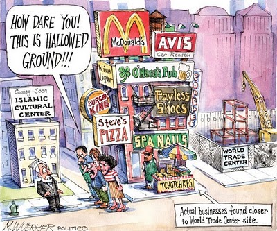 There are a couple of problems with this part of the politico-generated hysteria. First and foremost, the Imam of the proposed center, Feisal Abdul Rauf, speaks internationally on the dangers of extremism. As I write this piece, Rauf is touring the Middle East speaking out against terrorism. He was likewise seen as a State Department ally during the Bush presidency and funded for similar tours under G.W. He has condemned the 9/11 terrorist attacks as “un-Islamic” and gave a memorial speech for Daniel Pearl (the American journalist who was kidnapped and murdered by Islamic terrorists). Rauf is also a Sufi, a group of Muslims more known for their mysticism than their militancy. But “truth” is more an approximation in the media, particularly among liberal and conservative pundits when their candidates are running for office. In any case, Rauf is hardly a model for Islamic terrorism.