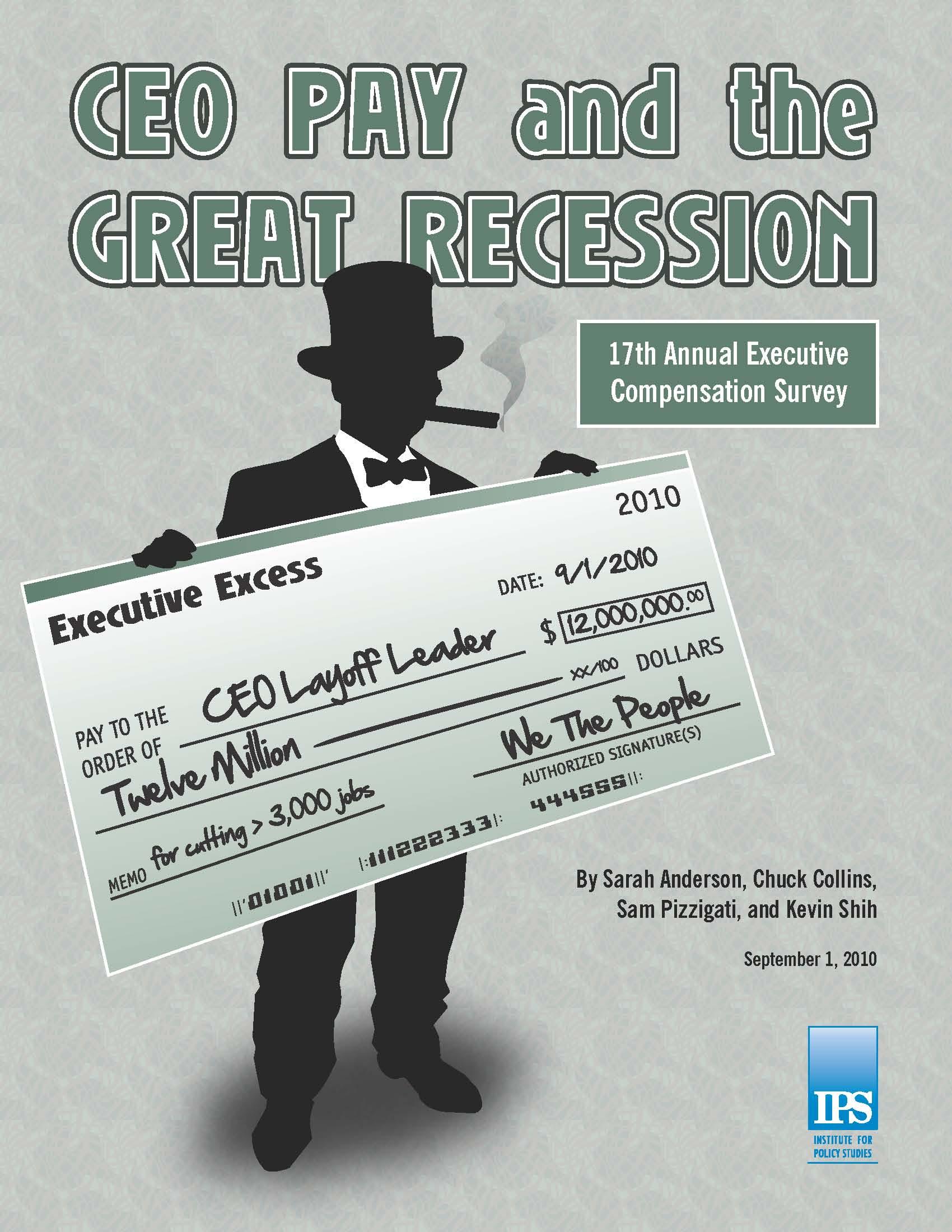 CEOs of the 50 firms that have laid off the most workers since the onset of the economic crisis took home 42 percent more pay in 2009 than their peers at S&P 500 firms, according to CEO Pay and the Great Recession, the 17th in a series of annual Executive Excess reports from the Institute for Policy Studies.