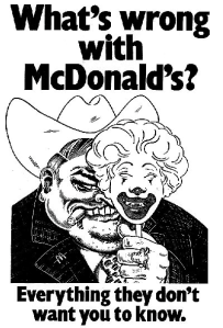Honestly, how could anyone say with a straight face that McDonalds does anything that promotes environmental sustainability? The very nature of McDonalds – drive through food, factory farm meet, forest destruction, unhealthy food, deceptive marketing campaigns targeting kids, and low wages – is unsustainable. (See the film McLibel and the website http://www.mcspotlight.org/).