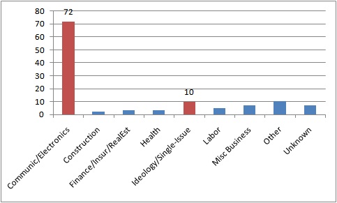 The chart below shows how many entities within specific industries or special interest areas specifically mentioned lobbying on “net neutrality” during the past two years:
