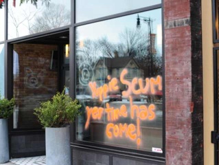 On Christmas Day, merchants and restaurateurs in the Wealthy and Cherry Street neighborhoods received messages. They were not Yuletide greetings, but declarations of class warfare. Painted on storefront windows, a garage at an ICCF townhouse, and on bricks thrown through windows, the protest was clearly about gentrification and a group of people being pushed out of their own neighborhood by business development.