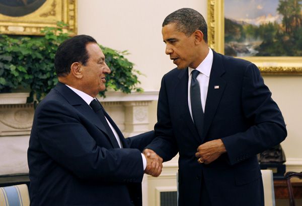 An L.A. Times editorial (1/28/11) implausibly argued that the U.S. record of support for Mubarak would assist efforts to promote democracy: “As an ally and benefactor, the United States has helped prop up the 82-year-old strongman since he took power 30 years ago, and today it is in a unique position to impress upon him the importance of democracy.”