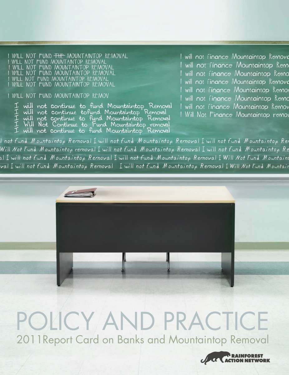 Rainforest Action Network and the Sierra Club’s 2011 report card, Policy and Practice, ranks ten of the world’s largest banks on their financing of mountaintop removal (MTR) coal mining projects and lending policies. The report card reviews the financing practices of Bank of America, Citi, Credit Suisse, Deutsche Bank, GE Capital, JPMorgan Chase, Morgan Stanley, PNC, UBS and Wells Fargo.