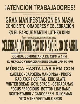 The Grand Rapids branch of the IWW is hosting its second annual May Day celebration. Like last year, the event will be held at Martin Luther King Park on Fuller SE, just off of Franklin.