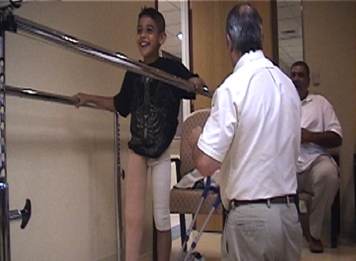 Yesterday, the 8-year old Iraqi boy we reported on three weeks ago, that lost his right leg due to a US missile attack outside his home in Baghdad, Iraq, took his first steps with a new prosthetic leg.