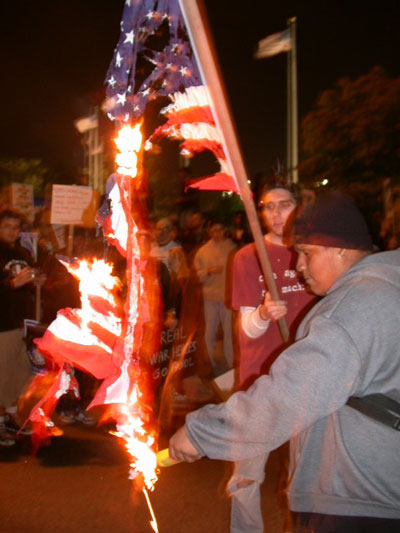 Reasons for burning an American flag? For the same reason that hundreds of thousands of people around the world burn it: to protest the imperialist policies behind the symbol. As historian Howard Zinn said, “There is no flag large enough to cover the shame of killing innocent people.”