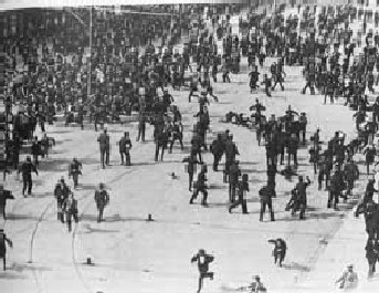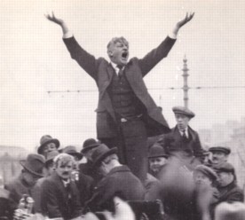 On August 31, Jim Larkin, leader of the tram workers’ union, was let out of jail on bail. A rally was planned, and hundreds of police officers stood nearby, looking to re-arrest Murphy. They were unprepared when he turned up to speak—from the balcony of Murphy’s own Imperial Hotel, having slipped past guards in disguise. He was arrested before he start his speech, and the police attacked the crowd. Hundreds ended up in city hospitals with injuries. Two workers were killed in the streets, and a third was tortured to death in a jail cell. A fourth worker was shot as she returned home from the rally.