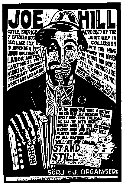 As a just published, terrific biography of Hill, The Man Who Never Died, by William Adler, makes clear yet again, Joe Hillström (né Joel Hägglund, his birth name) was framed on a murder charge in Salt Lake City, Utah, strapped into a chair and shot by a firing squad.
