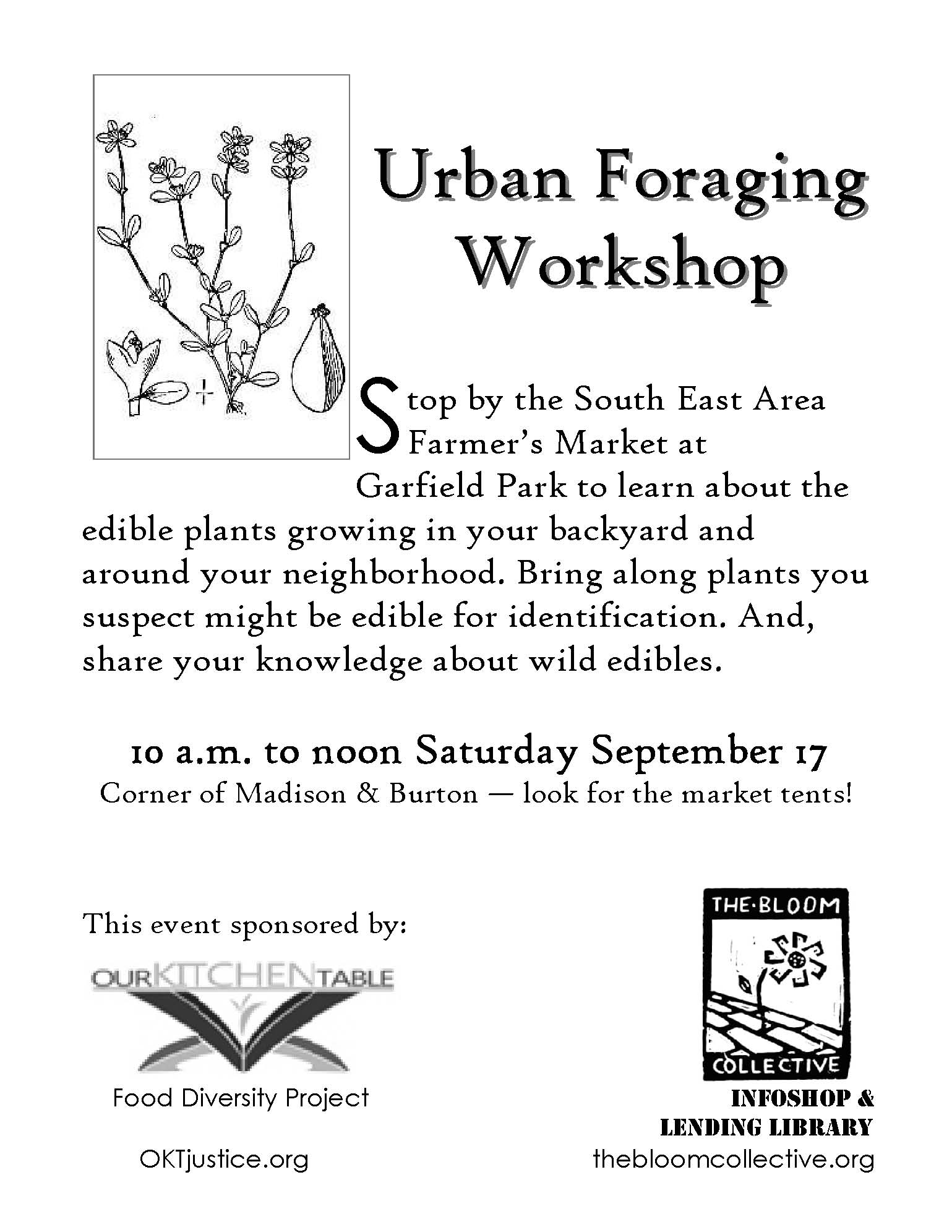 Our Kitchen Table and The Bloom Collective are sponsoring an Urban Foraging Workshop from 10 a.m. to noon this coming Saturday, Sept. 17, during the Southeast Area Farmers’ Market at Garfield Park. Just like the grocery stores have helped us forget that food comes from farms, cultivation of domestic crops has helped us forget that many of the native species we see around us (and label as weeds) once were a prize source of both food and medicine.