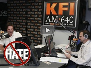 The John & Ken show on KFI (AM 640) is hate radio. The language used on the show, recently attacking the Latino community, is on par with that of Rush Limbaugh or Michael Savage, and it reaches over a million listeners each week. As with most radio shows, John & Ken’s substantial paychecks are funded by the advertisers who buy time on KFI, like GM Cadillac and Chevron.