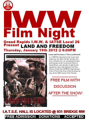 The Grand Rapids branch of the IWW continues its monthly film series on January 19 with a screening of the 1995 film Land and Freedom.