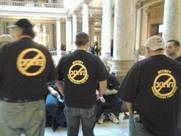 The sheer volume of the Super Bowl is overpowering: the corporate branding, the sexist beer ads, the miasma of Madison Avenue produced militarism, the two-hour pre-game show. But people in the Labor and Occupy movements in Indiana are attempting to drown out the din with the help of a human microphone right at the front gates of Lucas Oil Stadium.The Republican-led state legislature aims to pass a law this week that would make Indiana a “Right to Work” state. For those uninitiated in Orwellian doublespeak, the term “Right to Work” ranks with “Operation Iraqi Freedom” and “Fair and Balanced” as an phrase of grotesque sophistry. In the reality-based community, “Right to Work” means smashing the state’s unions and making it harder for non-union workplaces to get basic job protections This has drawn peals of protest throughout the state, with the Occupy and labor movement front and center from small towns to Governor Mitch Daniels’s door at the State House. Daniels and friends timed this legislation with the Super Bowl. Whether that was simple arrogance or ill-timed idiocy, they made a reckless move. Now protests will be a part of the Super Bowl scenery in Indy.