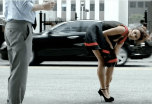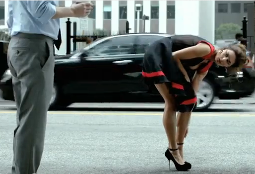 However, a commercial by Fiat robbed Go Daddy of its annual “sexist ad” status, when the car company unveiled their new ad during the Super Bowl. In this spot a nerdy looking guy is walking down the street with a latte and is stopped dead in his tracks when he sees a woman bent over in the street wearing a stunning black and red dress.