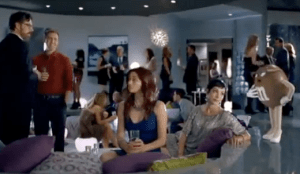 Up to this point the add could be viewed as empowering for women, since all the female characters in the spot seem disgusted with the behavior of men, plus the female M&M character calls out the adolescent male behavior. Unfortunately, the ad doesn’t end there. A male M&M character moves the audience back into a silly mood when he takes his outer coating off thinking the female character is nude. This is all accompanied by the male M&M character dancing and music blaring in the background. The female M&M character continues to look disgusted at the end of the spot, but the “humorous” component of the spot shifts the focus away from women’s confidence and onto the “guy acting silly.”