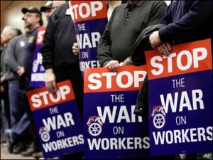 That’s probably because workers are hard-pressed to imagine what could be more “devastating to working people” than what they’ve seen in the last year alone. Workers have faced the erosion of collective bargaining rights, the first state in the Midwest passing “Right to Work” legislation, an FAA reauthorization bill signed by Obama that makes it more difficult for airline workers to organize, plans for massive layoffs of postal workers nationwide, and ramped-up attacks on public education.”