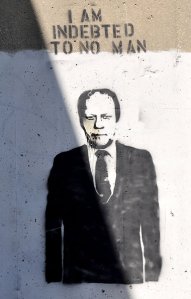 Again, the contradictions are quite apparent. It’s not ok to have anti-war graffiti, but it’s ok to have graffiti of a war criminal.