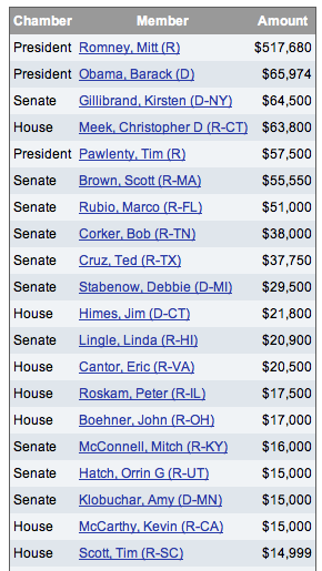 Mitt Romney and Barack Obama are the top two recipients of campaign money from Goldman Sachs in 2012, which underscores how centers of power often cover their political bases so that no matter which candidates wins, they win.