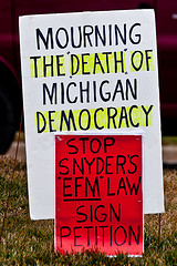 Organizers had hoped to suspend Public Act 4, the Local Government and School District Fiscal Accountability Act, also known as the “emergency financial manager law” signed by Gov. Snyder last year. The Center for Public Integrity explained that with the law, “appointed managers can nullify labor contracts, sell public utilities and dismiss elected officials.” Greatly contested was the ability of emergency managers under this law to nullify collective bargaining agreements.