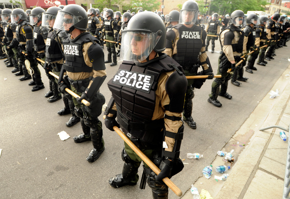 A people’s media would have reported and reflected critically on the excessive, surreal level of militarized policing in Chicago. From at least Friday May 18th through Monday, May 21st, 2012, that media would have noted, the downtown and South Loop of Chicago were placed under proto-totalitarian multi-dimensional para-militarized police-state occupation. (I’ll report from the scene that heavily armed, high-tech federal, state, county, city and private security forces were omnipresent and ubiquitous in the gleaming center of “global Chicago.” At almost every step in and around the city’s downtown and South Loop, I beheld black-clad, baton-wielding and vest-wearing agents of repression, high-speed police vans and cars speeding around corners and occasionally into crowds – an intimidating, vast “security” presence that seemed more than vaguely dystopian. Except for many thousands of militarized police, the Loop was nearly a ghost town by Friday morning. City, federal, state, and media helicopters hovered above the central business, hotel and restaurant district and swept the lakefront, monitoring real and potential protest. Police cars and vans swept around corners with sirens blaring to descend on real or imagined dissenters. Everywhere you looked, it seemed, men in paramilitary black were getting out of shining white vans and black SUVs.)