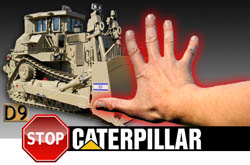 Last year, after seven years of Caterpillar’s most important corporate gathering being dominated by member groups and others protesting the company’s complicity in the occupation, Caterpillar moved its shareholder meeting from Chicago to Little Rock, Arkansas. This year, Caterpillar moved even further away to San Antonio, Texas. We said it last year and we’ll say it again now: Caterpillar, you can run but you can’t hide!