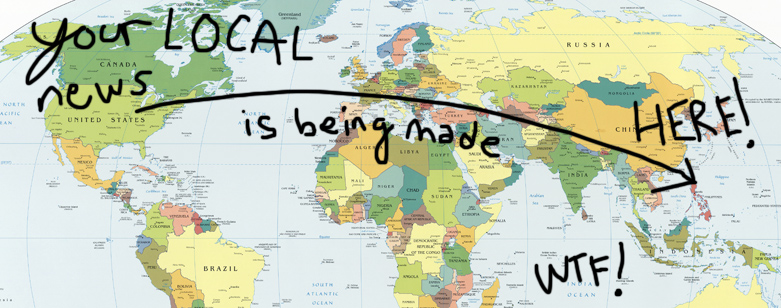 According to a major story by This American Life, dozens of papers around the country have outsourced local news production to Journatic, a company that hires underpaid workers in the Phillippines to create local news for communities in the United States.1