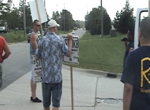 thank-you jeff,for taking the time to come and join us on the pickett line friday. It’s great having solidarity with other unions in this area. As everybody else that read your article can see, the security dinks from Huffmaster are trying to set us up for vandalism. We are not that stupid. We are going to follow the quidelines set forth by the Teamsters and the Grandville Police Dept. We are still willing to take the $3.26 pay cut and get back to work. Thanks again Tom Smedley, Fellow Teamster