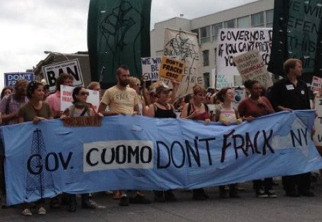 The future of New York’s water supplies and the health of its millions of citizens hang in the balance as Governor Andrew Cuomo decides whether to end the state’s moratorium on new wells to drill for “natural” gas through the controversial industrial process of hydraulic fracturing or “fracking.” Activists estimated that over two thousand concerned citizens joined the march in Albany Monday to try to persuade Cuomo not to lift the moratorium — statewide or in some counties — a decision expected to be announced some time after Labor Day.