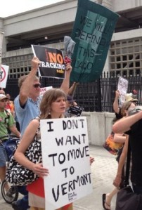 In her speech, Steingraber called the growing resistance towards fracking the “greatest human rights movement in New York State since abolition and suffrage” and said that “I choose to believe in a vision of an unfractured New York that turns its back on nineteenth-century thinking and fossil fuels and leads the world in the creation of a clean energy economy.” Sandra held a sign made by her son which read “I Don’t Want to Move to Vermont,” a neighboring state that has banned fracking, like Germany and France. Steingraber is author of “Raising Elijah: Protecting Our Children in an Age of Environmental Crisis.”