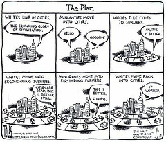 Dan Gilbert talked about purchasing buildings in downtown Detroit, because of “this commitment” to reviving the core of Detroit. Gilbert couldn’t even remember how many buildings he owned and of course was not asked if his buy of property would lead to accelerated gentrification.