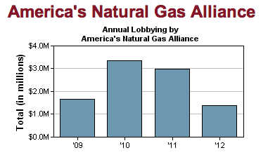 The American Natural Gas Alliance is a fairly recent creation, but has already spent nearly $10 million dollars lobbying the federal government since 2009. This alliance represents dozens of companies seeking to expand profits from hydraulic fracturing. The Vice President of Strategic Communications at the American Natural Gas Alliance is Dan Whitten, who also happens to be the spokesperson for Friends of Natural Gas Michigan.