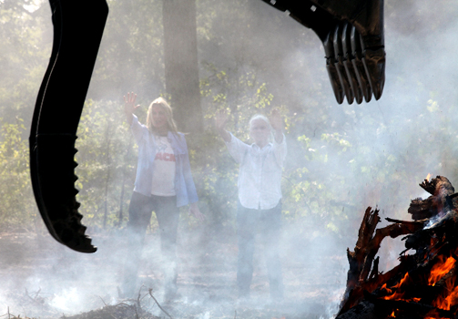 CBS News, USA Today and People showed some interest in the story when Darryl Hannah was arrested on Oct. 4, but CBS did no original coverage, only running an Associated Press story. All three reports ran Hannah’s unattractive mugshot, but none of them mentioned the treehouse blockade or the protestors’ underlying motivation, the dangers of tar sands oil.
