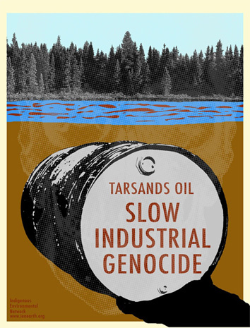 MacPhee then shifted to talking about the history-themed projects he mentioned in his opening remarks. One of those projects was called Resourced, dealing with the environment and resource extraction. While doing this project there was a campaign to bring a pipeline in with liquefied gas, which led to other prints being made. Just after this there was a large climate change summit in Cancun, where lots of their work was shown/used.