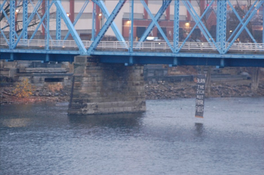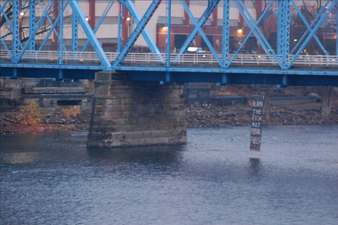 Burn the Rich, not Fossil Fuels banner hung in Grand Rapids