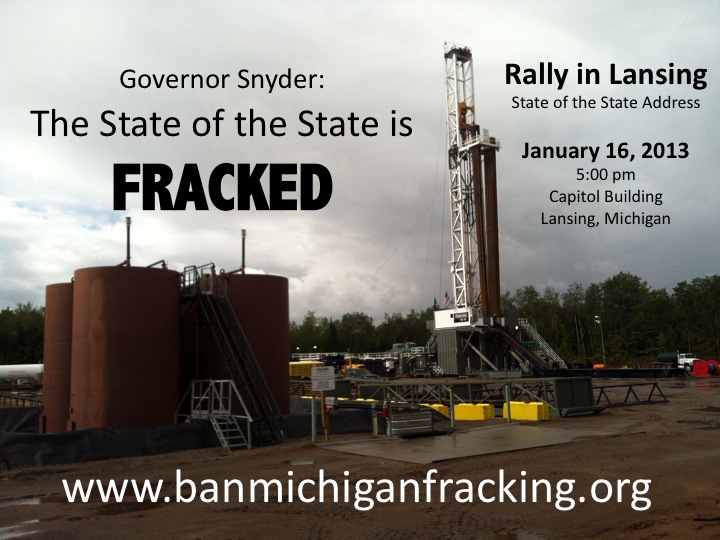We will gather at 5:00 p.m. outside the Capitol as legislators and guests enter the building to hear the governor’s speech (which begins at 7). We will continue to be there through the address, so if you can come after 5:00, please do! Bring your creative, pro-ban, “no compromise” signs. A lot of folks inside the capitol are there thanks to direct support from the frack industry.