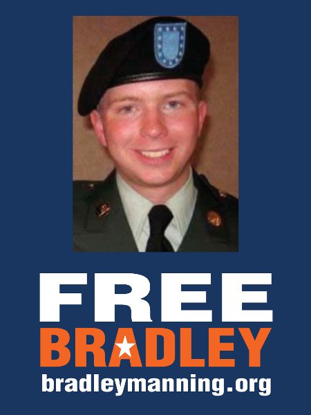 For shedding light on these atrocities carried out in the name of the United States of America, Bradley Manning has been rewarded by spending three birthdays in prison without trial. Since May 29, 2010, Manning has been held in pretrial detention, the first ten months of which he was kept locked in solitary confinement, denied exercise, sunlight, social interaction, and a number of times was forced to stay completely naked, all in violation of U.S. military law.