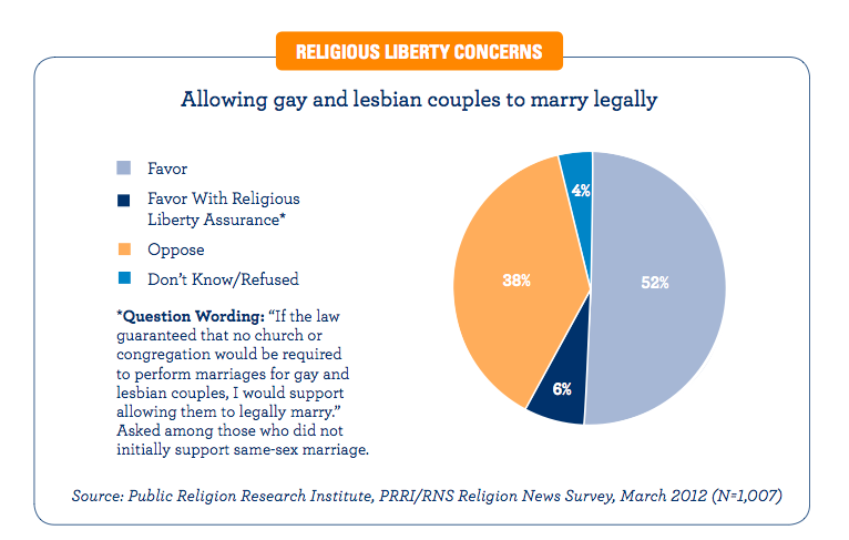 At least nine state legislatures currently hold “religious liberty caucuses” to redefine what America means by religious liberty and carve out wider and wider arenas that would not be protected under discrimination law. An increasingly popular right-wing cause, religious liberty was even one of Mitt Romney’s rallying points in the 2012 presidential debate.