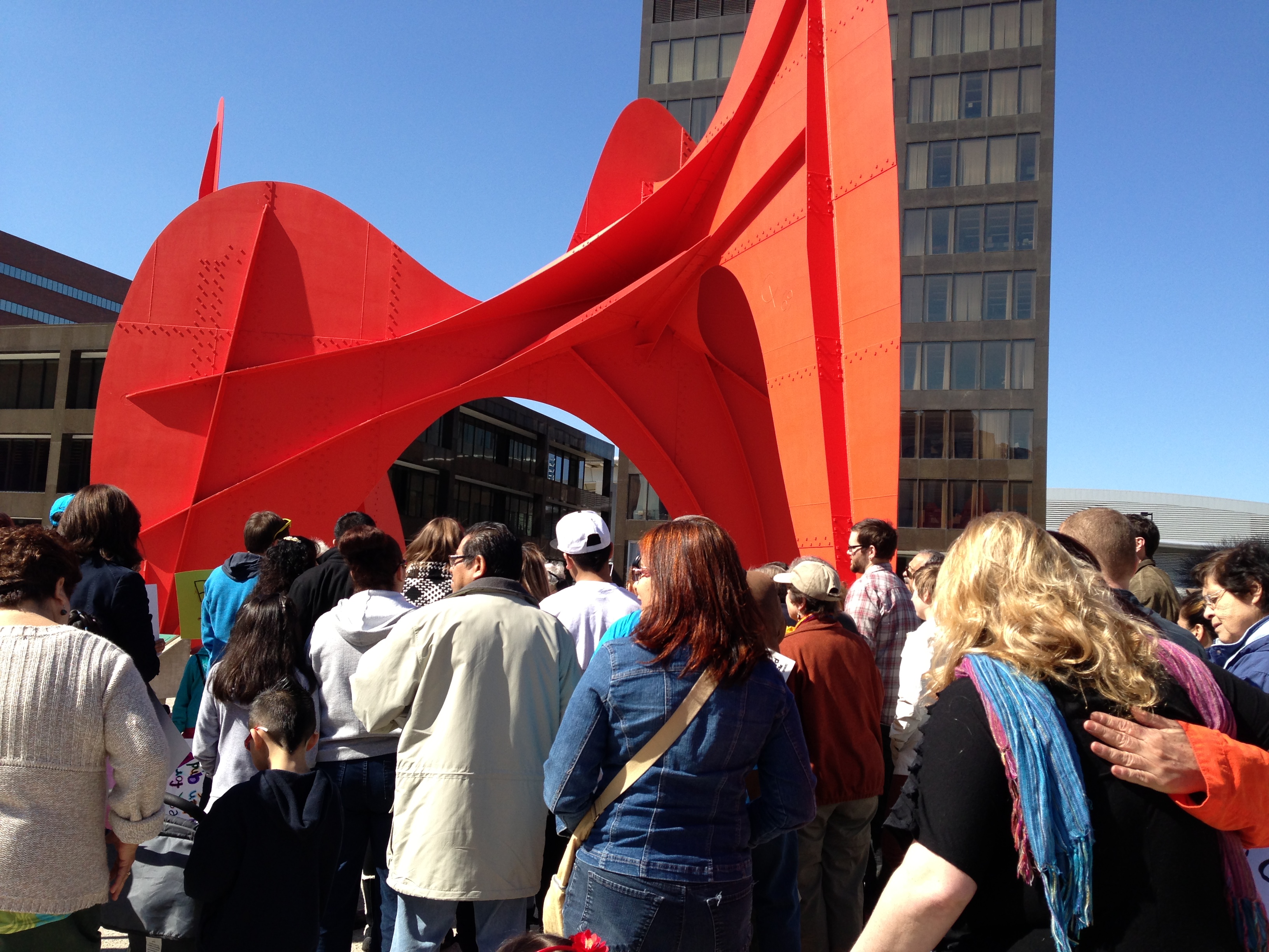 The demonstrators initially gathered at Calder Plaza in downtown Grand Rapids, where Joyce Herdog led the group in prayer. The Dominican sister ask that folks remember that Jesus’ love was universal and that he “made no distinctions”.