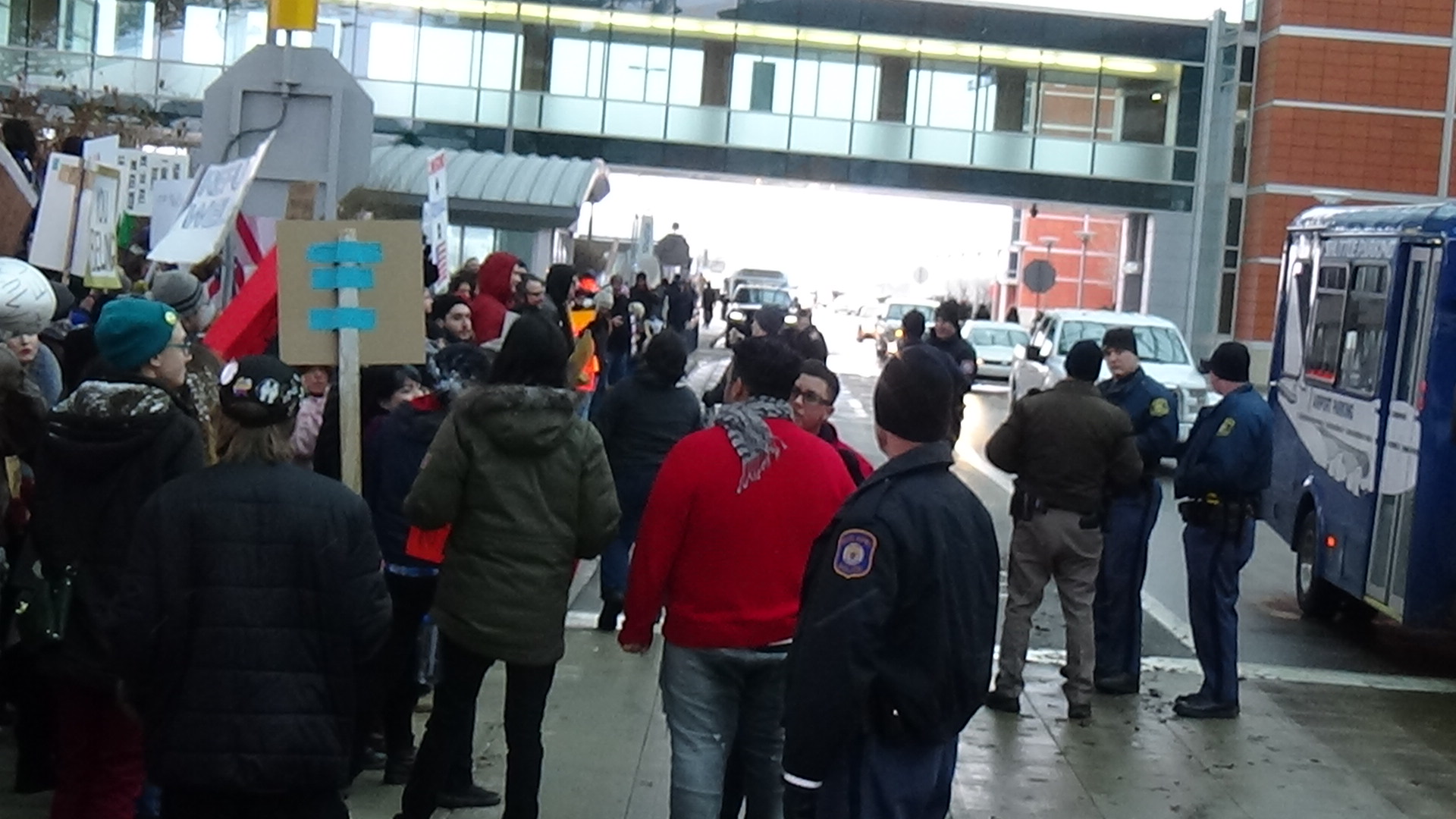 Standing for Refugees, Immigrants and Muslims: Protest Defies Airport by not complying with designated “Free Speech” area